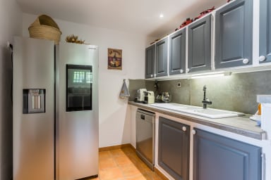 Cuisine entièrement équipée : frigo américain, four, lave-vaisselle, machine à café, etc.